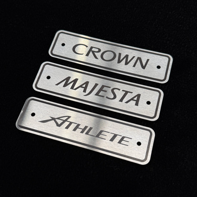 - Laser engraved stainless steel model specific badging