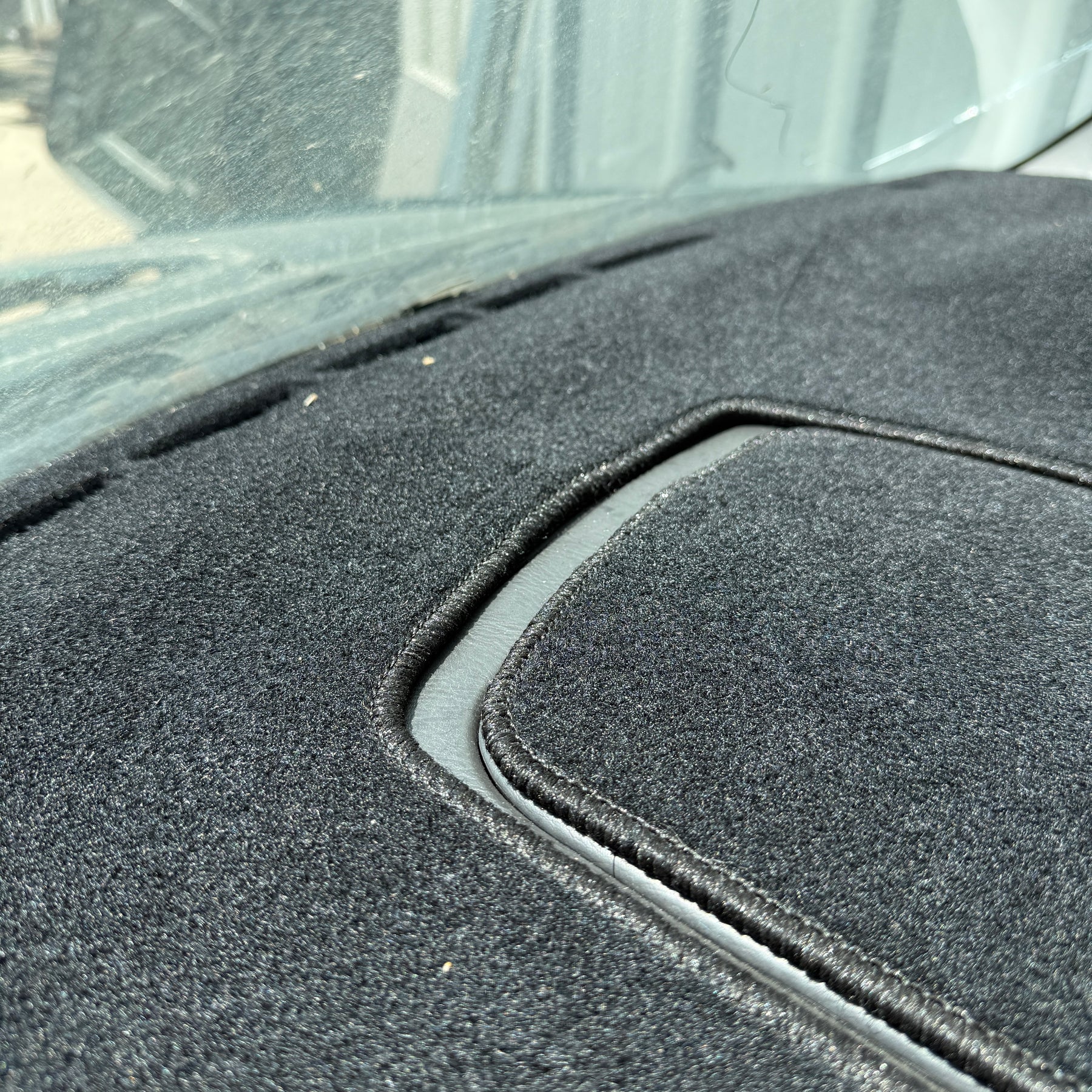 Since they are laser cut in house, finer details like vents holes or speaker holes can be cut perfectly which provides a much greater fit & finish compared to anything else on the market. Velcro locating tabs are embedded into the mat, however it is owners choice if they wish to stick the velcro to their dash.