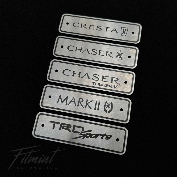 - Laser engraved stainless steel model specific badging